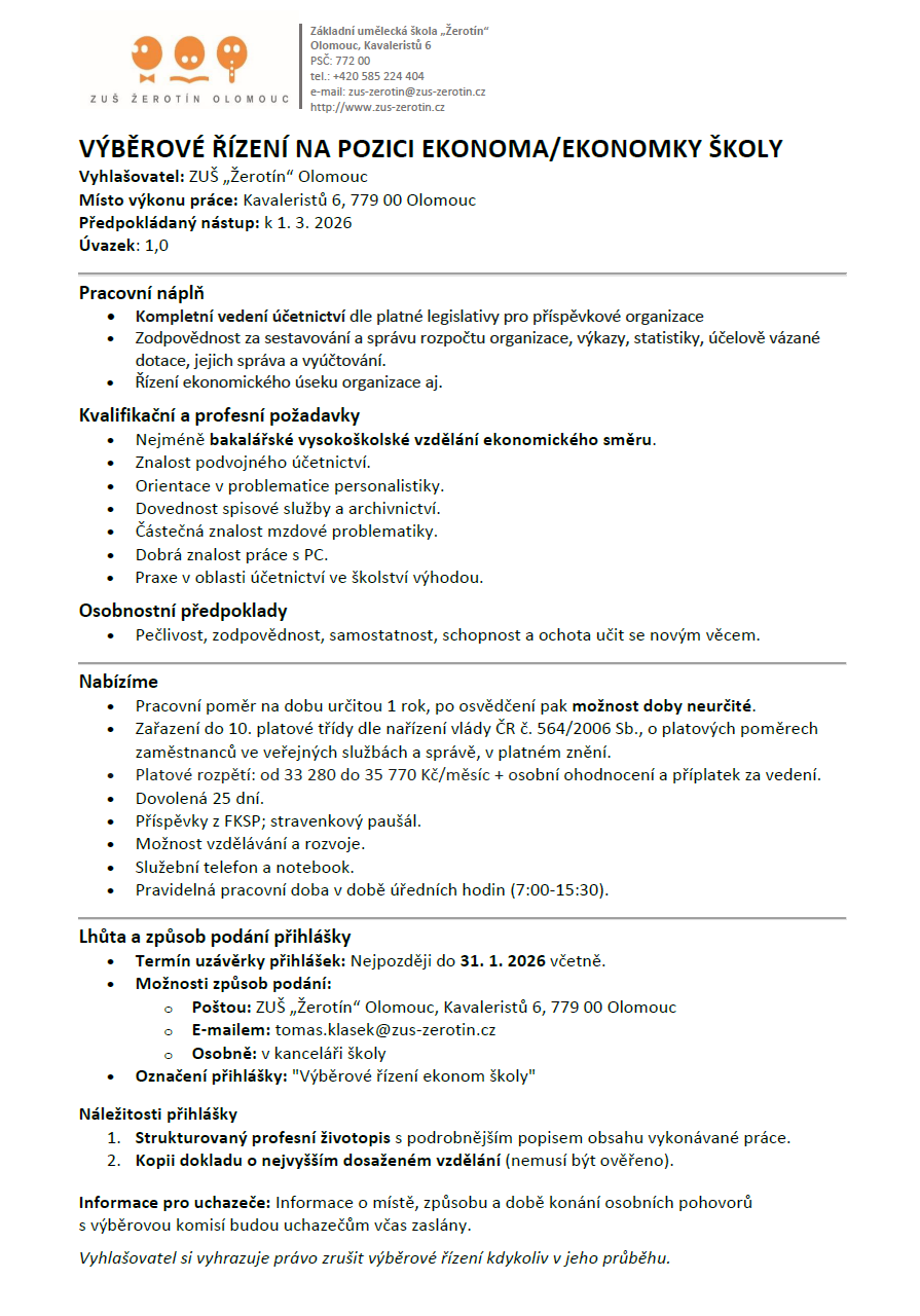 ZUŠ “Žerotín” Olomouc získala 1. místo v ocenění škol za umělecký obor