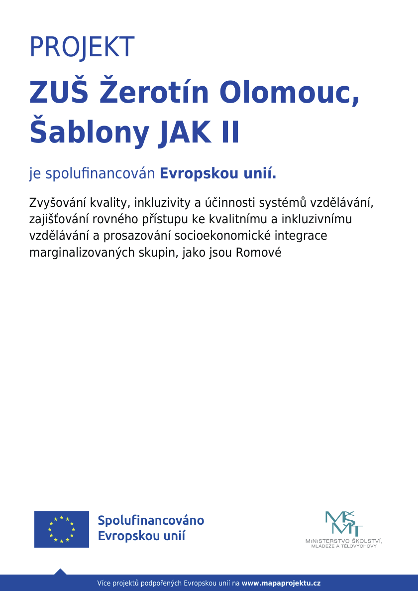 ZUŠ Žerotín Olomouc se zapojila do dalšího projektu Šablony JAK II (PLAKÁT)